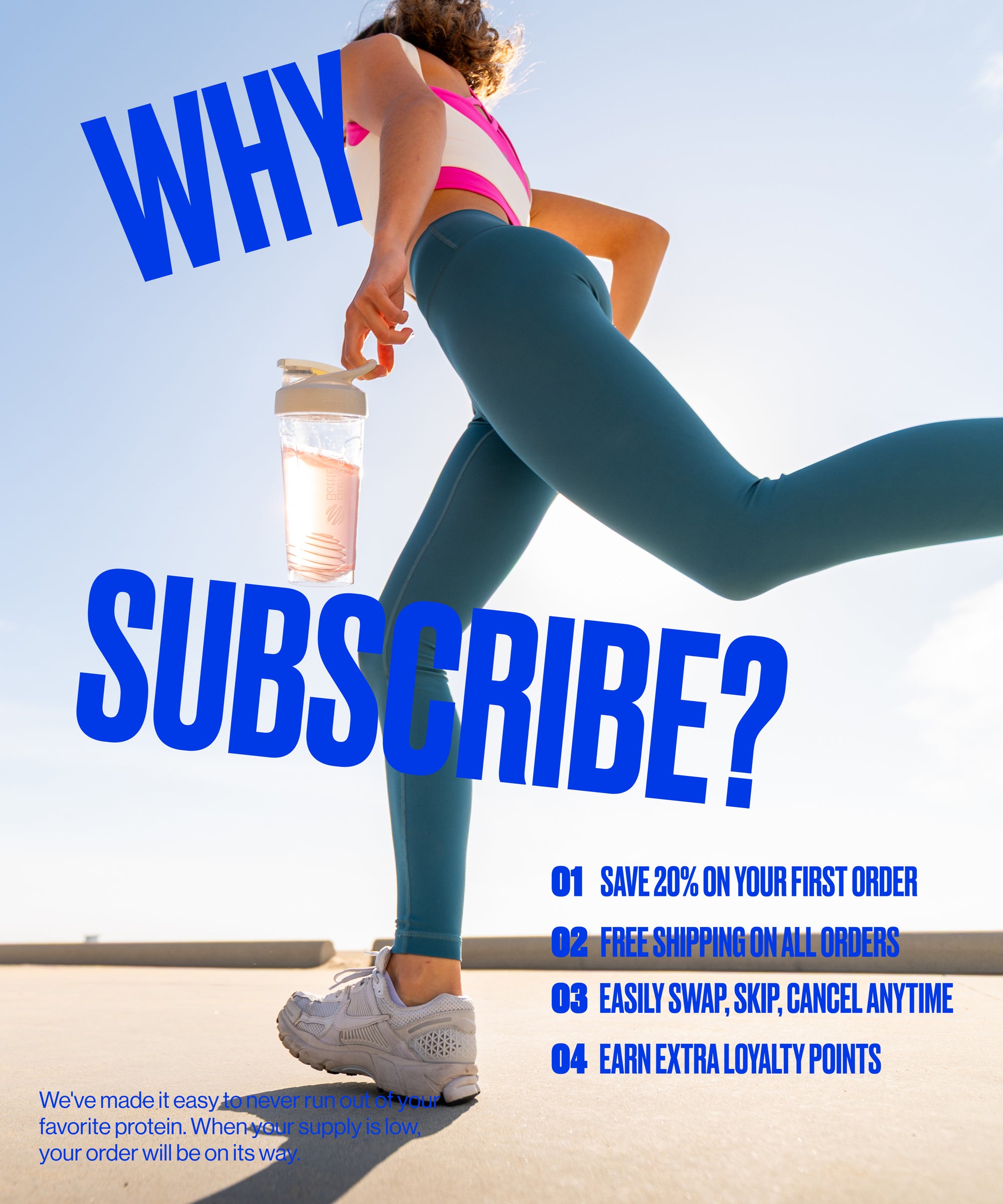 WHO DOESN'T LIKE A 20% OFF DISCOUNT ON JUICY PROTEIN! WE KNOW IT'S A TOUGH COMMITMENT, THAT'S WHY WE HAVE A WAY TO CANCEL YOUR SUBSCRIPTION AT ANY POINT IN TIME.